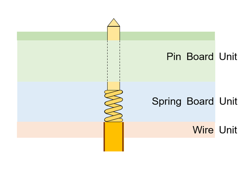当社の基板検査治具は、ピンとスプリングがそれぞれ独立したセパレート構造*1となっており、多種多様な基板の検査に柔軟に対応することが可能です。