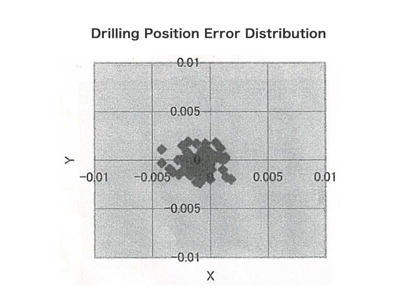 また、特別な加工方式を適用することで、穴位置精度±3μm以下も実現しています。